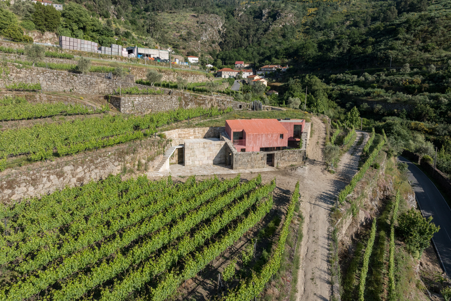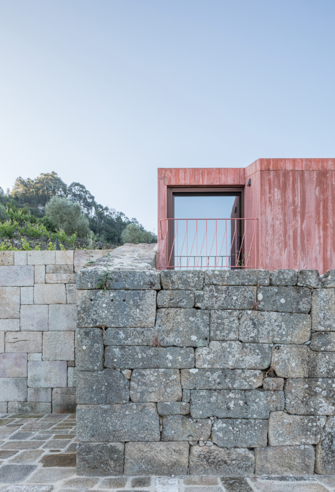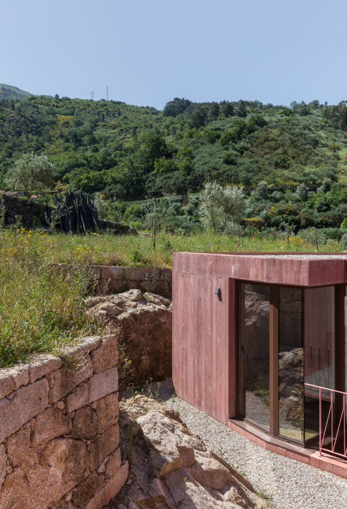 Dům Jeronimo se nachází v portugalské oblasti Douro – Resende, tedy v krajině protkané vinicemi. Na pozemku leží několik staveb vyžadujících rekonstrukci, ale studio Stefano Riva Architetto dostalo za úkol navrhnout rekonstrukci jen jedné z nich a přetvořit ji v prázdninový dům. Původní stavba byla ruinou, a to do té míry, že jediným prvkem, který zůstal zachován a byl integrován do nové architektury, se stala starobylá žulová zeď.