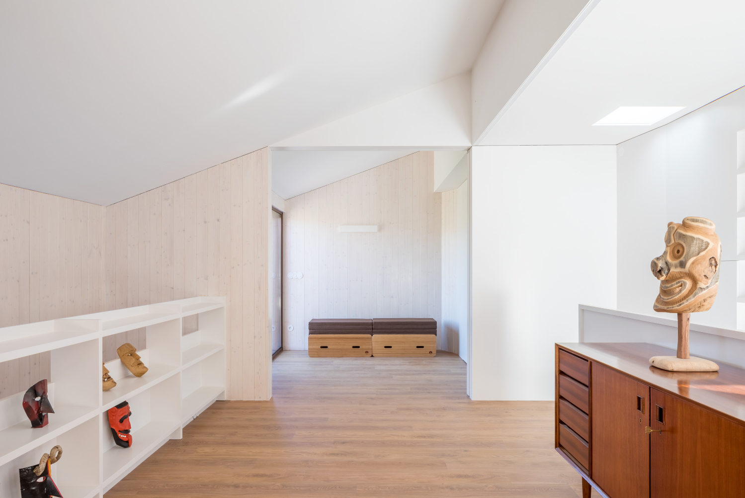 V interiéru je dům funkčně řešen ve dvou podlažích. Společenské prostory, včetně kuchyně a obývacího pokoje, se nacházejí v přízemí, zatímco tři ložnice a knihovna jsou umístěny v patře. V prostorech mezi jednotlivými objemy a zdmi budou přirozeně růst stromy a popínavé rostliny, které budou rozlišovat rytmus ročních období a modelovat pronikající přirozené denní světlo.