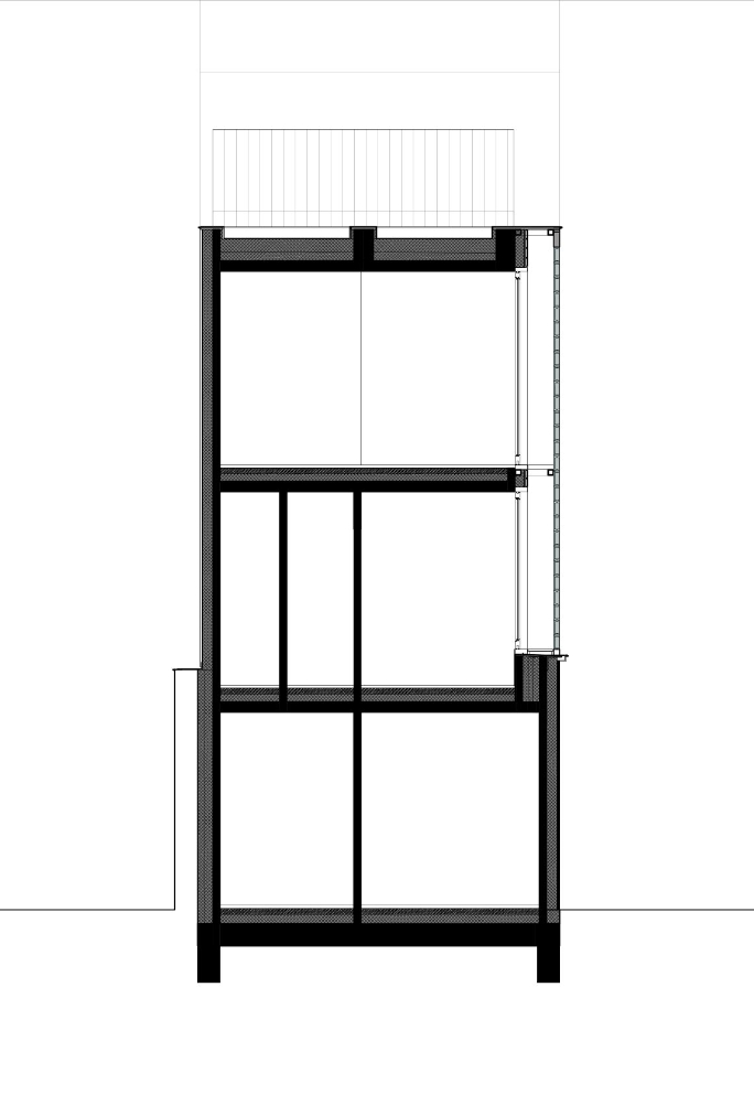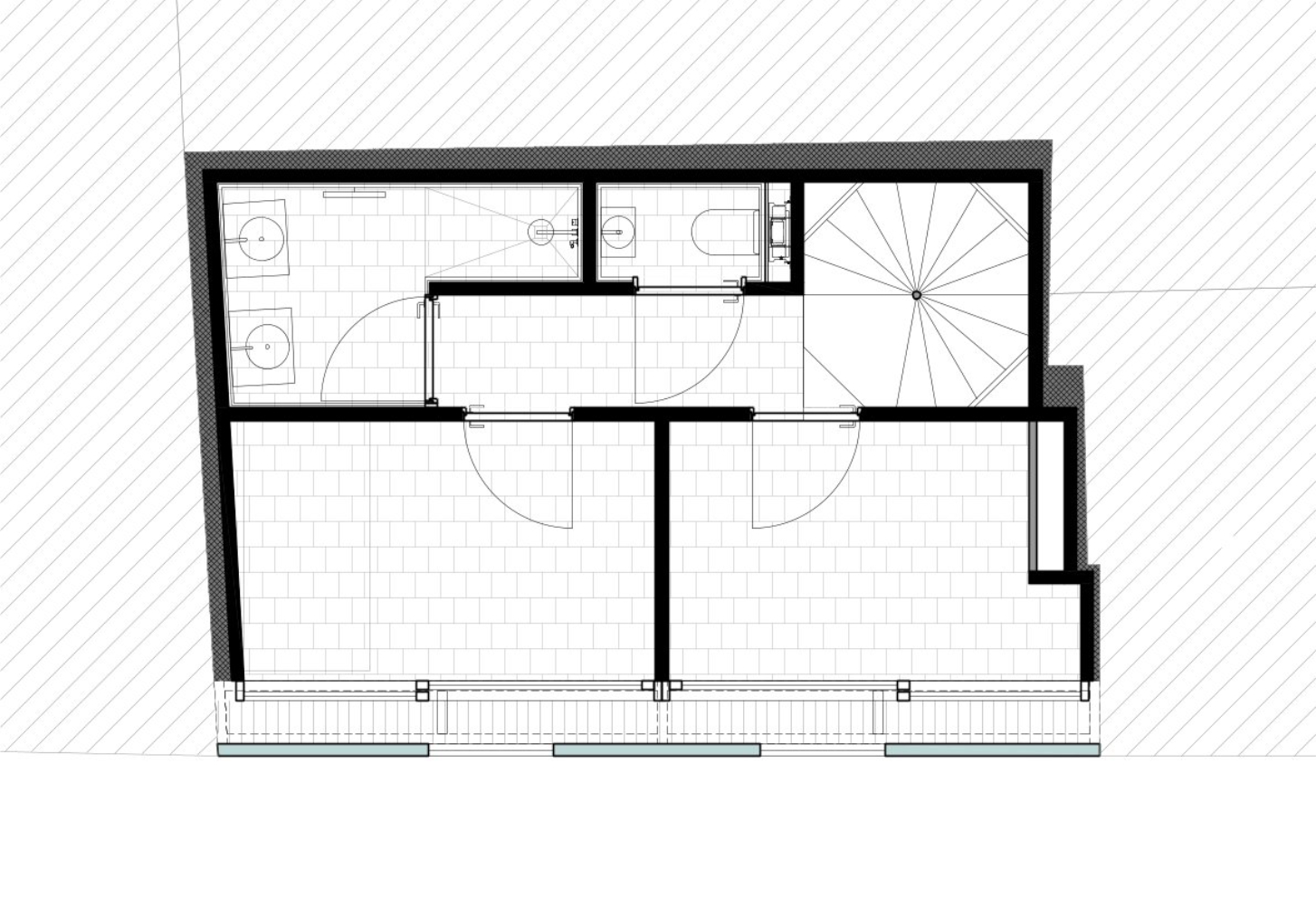 The house is situated on a very challenging plot: extremely small and completely enclosed on all sides. The main challenge was to make the most of the minimal available space and natural light. The project became one of give and take: a building that stands out while also striving to blend into its surroundings.