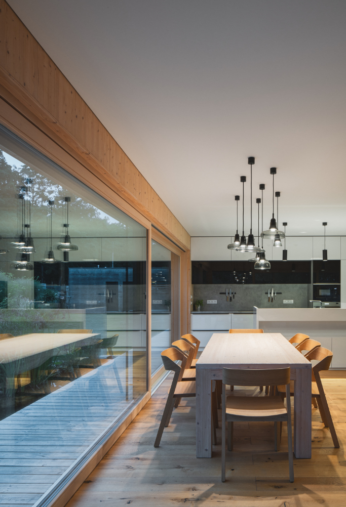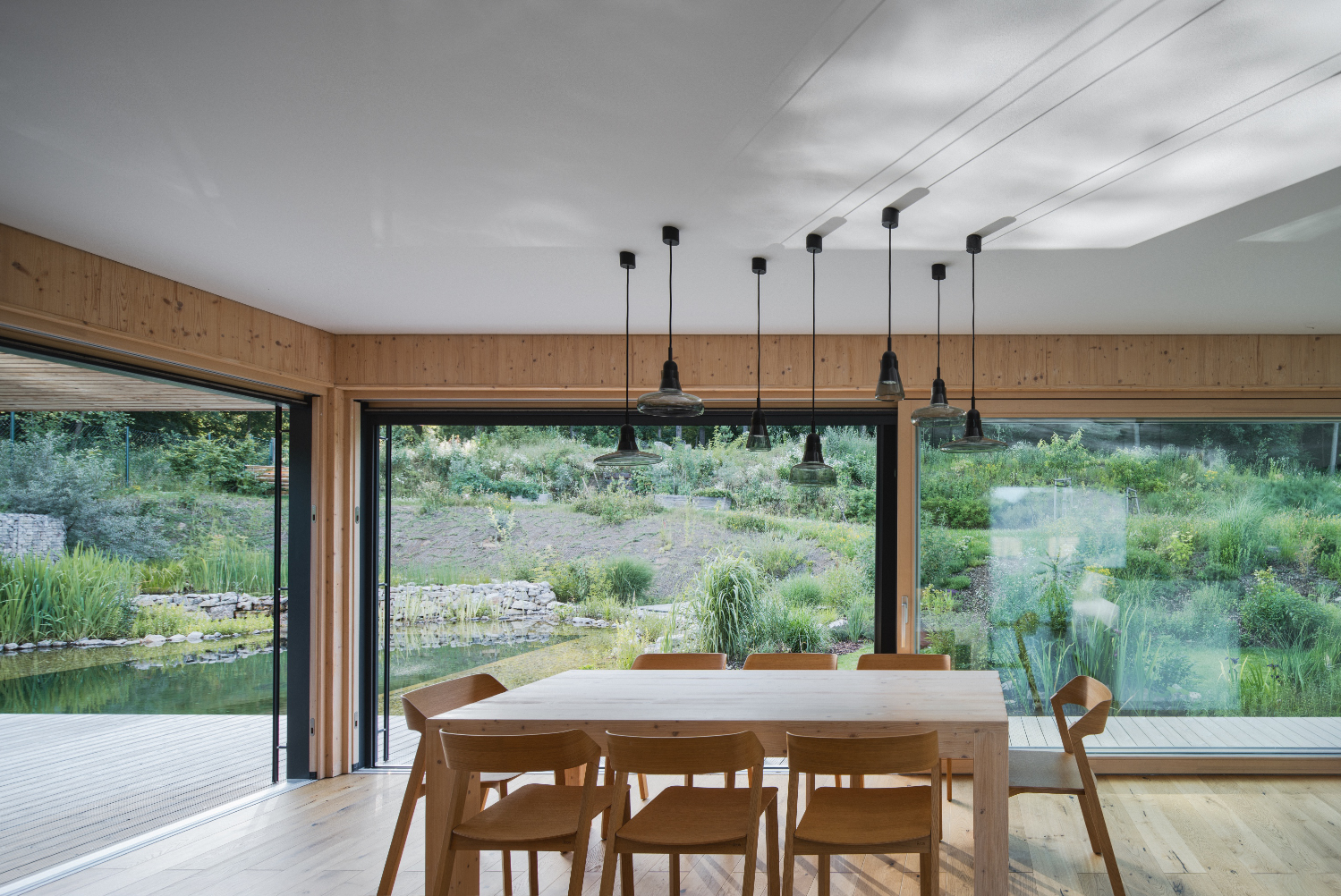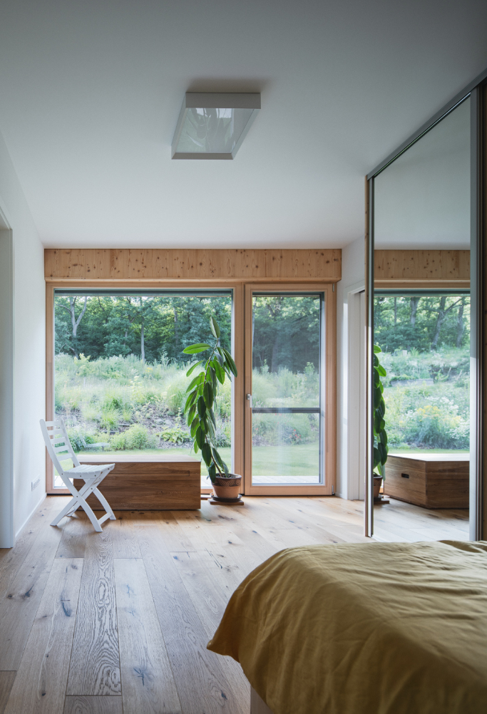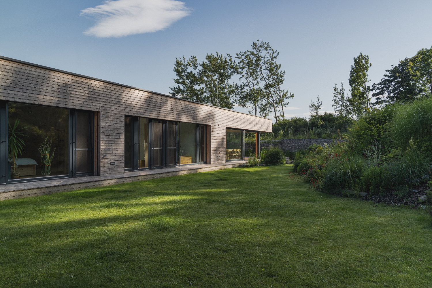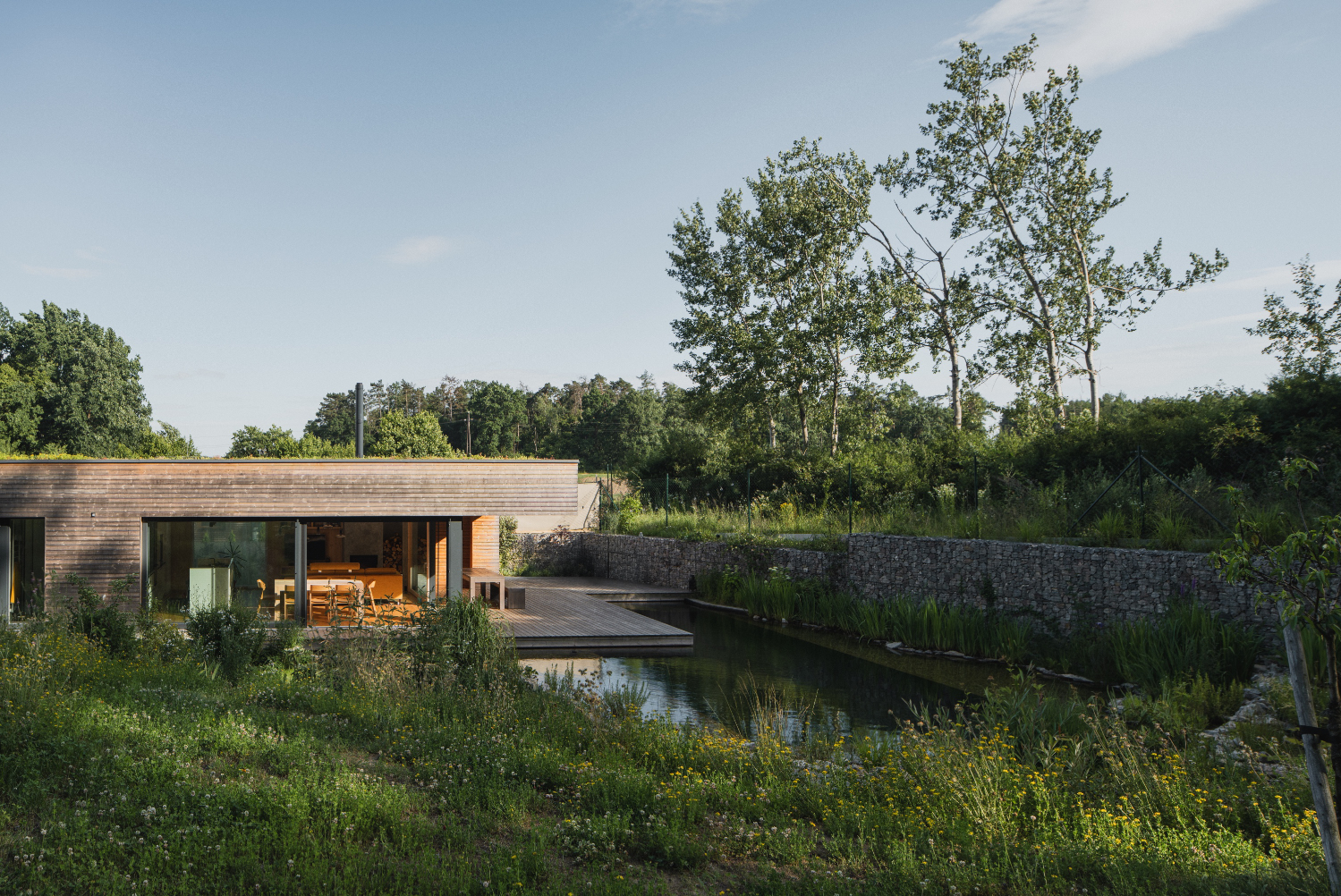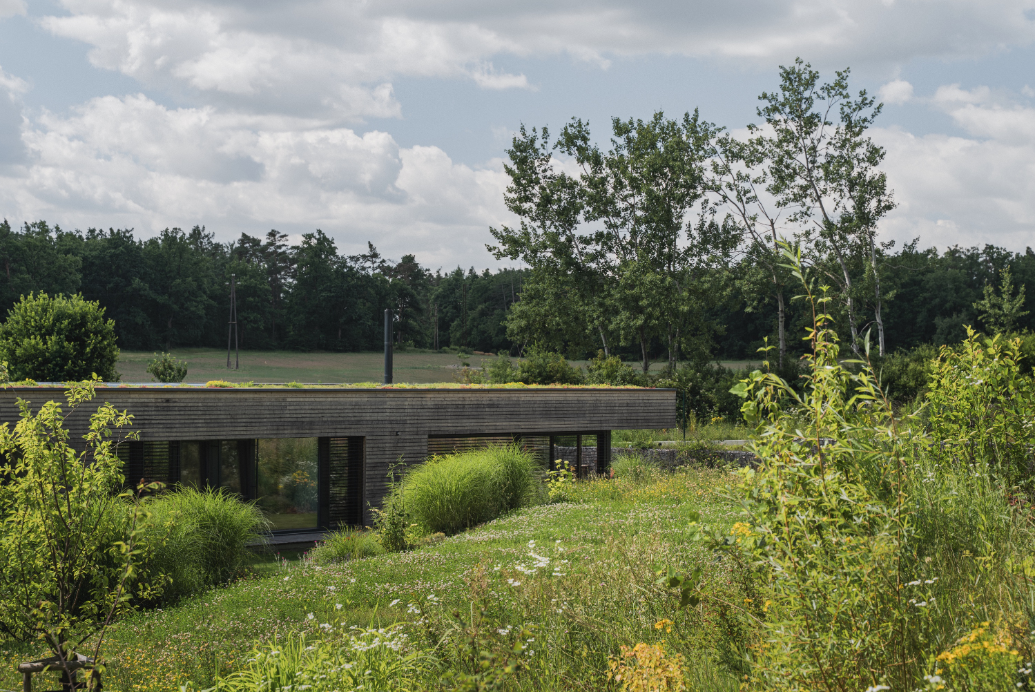 A family home on the edge of a small village near Prague was designed as a thoughtful response to a landscape that was yet to change. At the time of design, the plot was surrounded by wildflower meadows with open views. Nevertheless, the architect chose to orient the house toward the garden—deliberately turning away from a landscape that would eventually become developed. By turning toward the forest and the quieter part of the plot, he anticipated the evolution of the area and created a house that protects its own world.