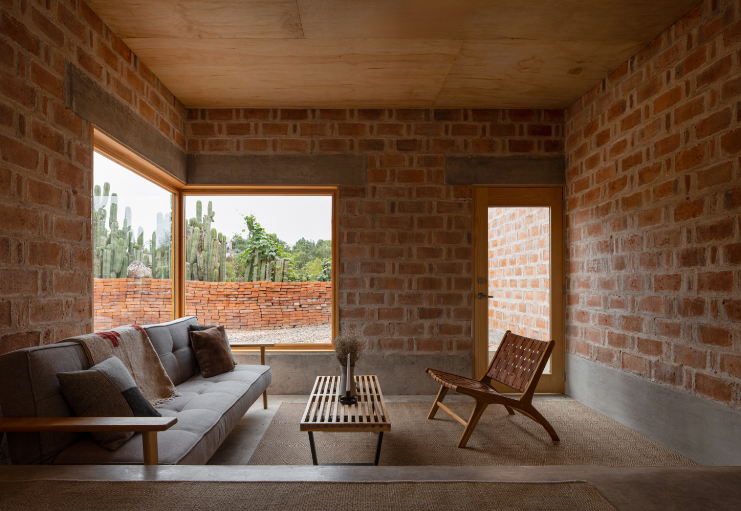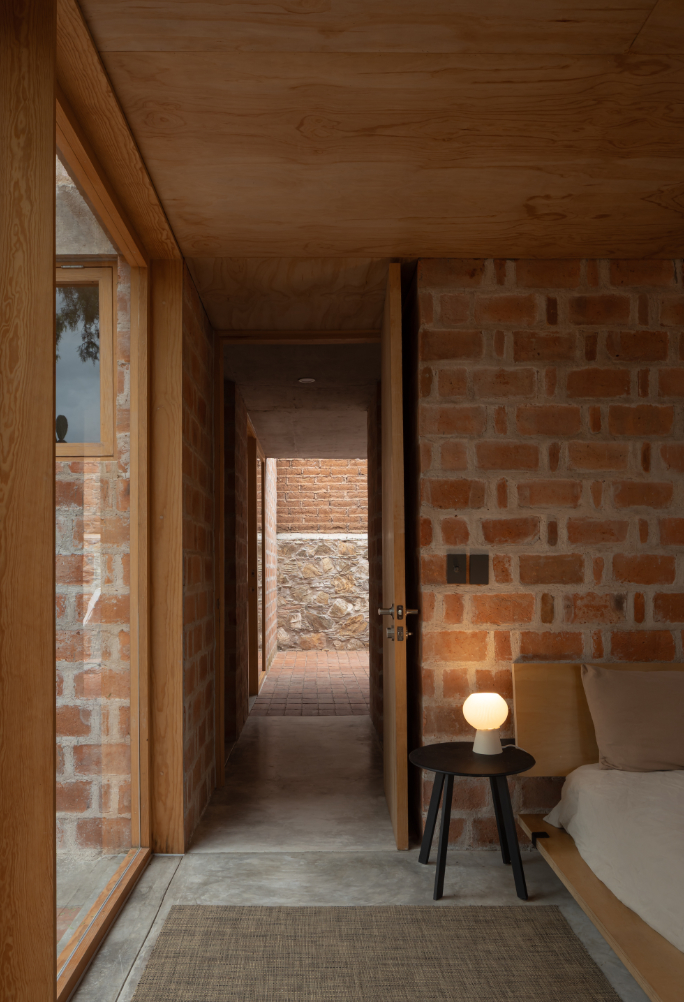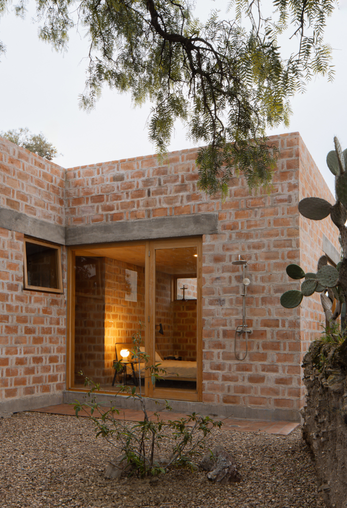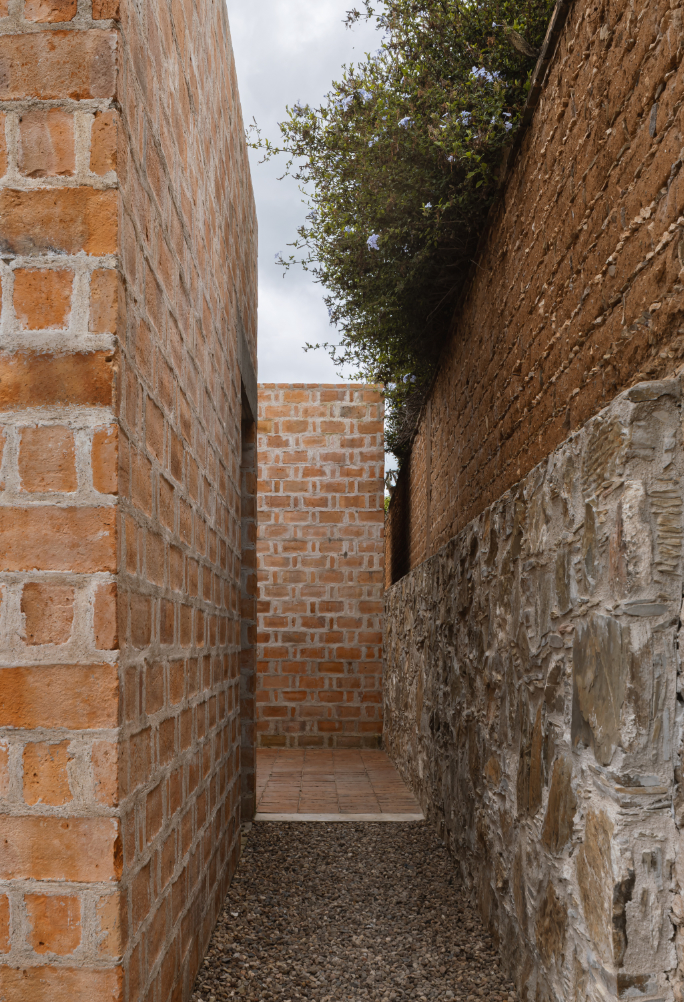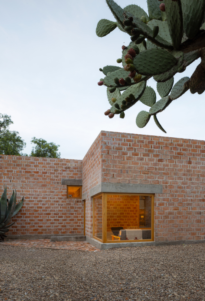 Rozhodnutí použít lokálně vyráběnou červenou pálenou cihlu vycházelo ze snahy pracovat s tradičním materiálem, jehož tepelnětechnické vlastnosti umožňují využít systém dvojitých stěn, v Mexiku známý jako enhuacalado. Díky této konstrukční technice lze stavět masivní duté stěny, které integrují jak nosnou funkci, tak vedení instalací a zároveň usnadňují etapizaci výstavby s vyšší efektivitou.