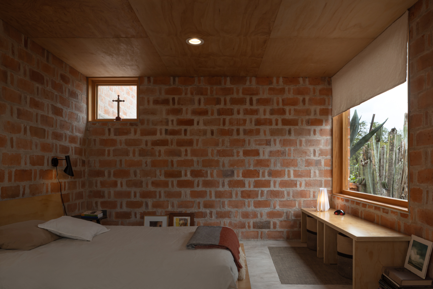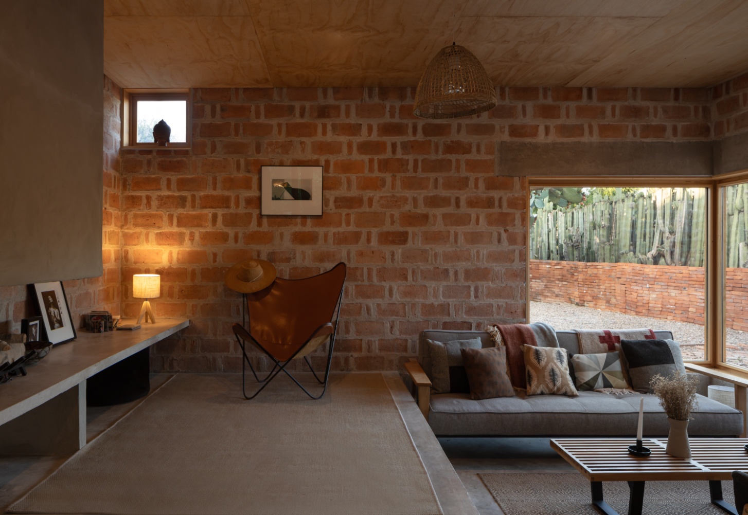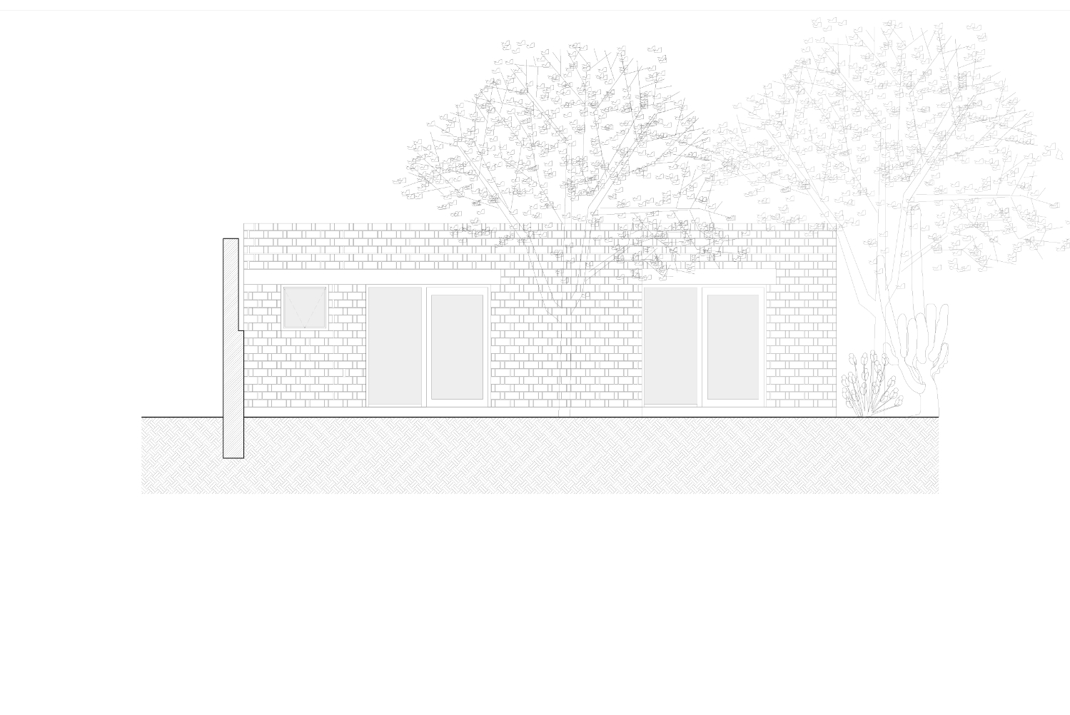Rozhodnutí použít lokálně vyráběnou červenou pálenou cihlu vycházelo ze snahy pracovat s tradičním materiálem, jehož tepelnětechnické vlastnosti umožňují využít systém dvojitých stěn, v Mexiku známý jako enhuacalado. Díky této konstrukční technice lze stavět masivní duté stěny, které integrují jak nosnou funkci, tak vedení instalací a zároveň usnadňují etapizaci výstavby s vyšší efektivitou.