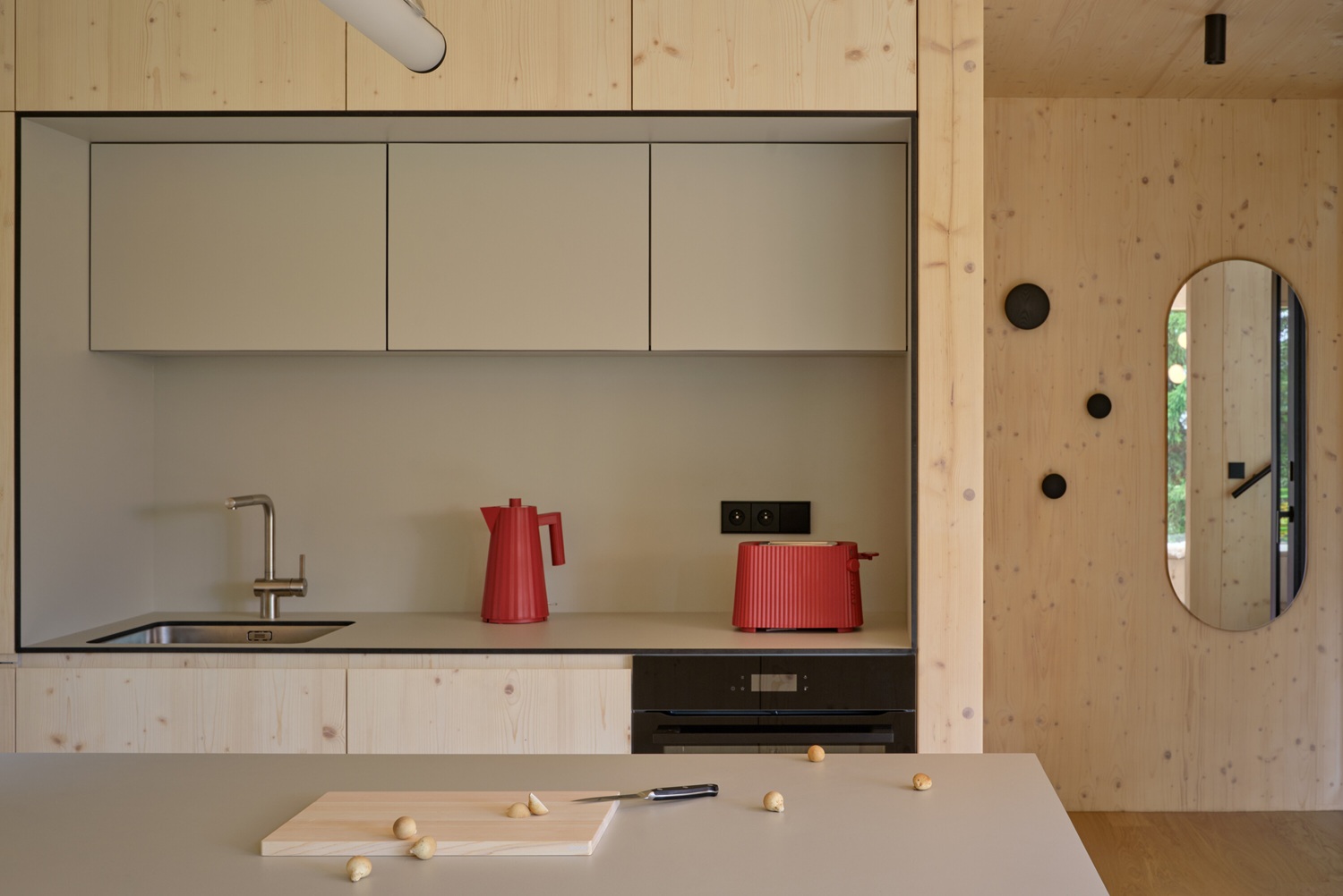 Projekt byl realizován architekty v režimu design & build, kdy návrh a výstavba probíhaly v úzké koordinaci, což zajistilo věrnou realizaci architektonické koncepce i precizní provedení detailů.